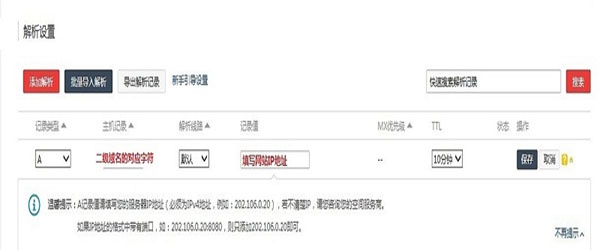 二级域名设置解析方法: