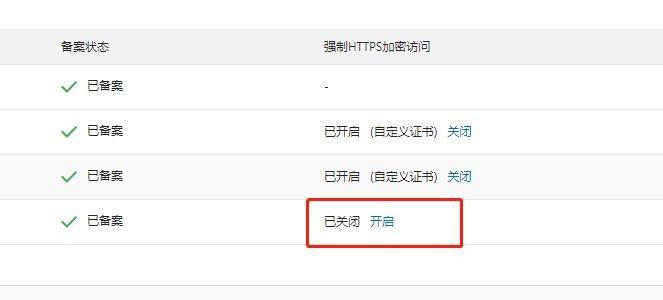 2.2.域名管理——域名绑定——强制https加密访问,本身有申请第三方的,选自定义证书