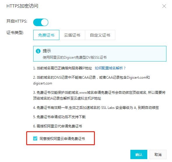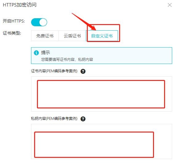 3.选择免费证书或自定义ssl证书。