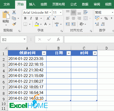 要从日期时间数据中提取出日期,可以使用以下公式: