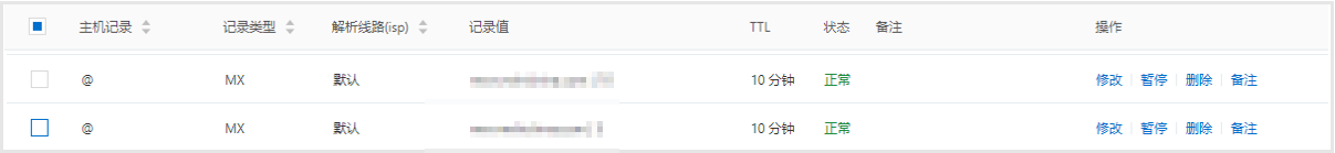 如果您目前添加了多个邮箱服务商的MX解析,也会导致收信异常,请您根据邮箱的使用情况只保留一个邮箱服务商的MX解析。