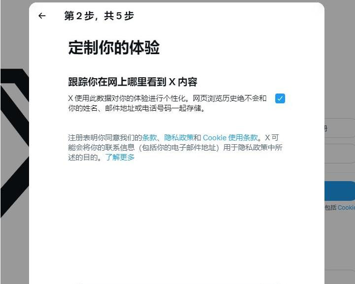 第三步:勾选定制你的体验,方便推特给您推荐喜欢的内容。