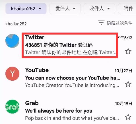 5、谷歌邮箱会收到推特发送的验证码,找到后输入即可;