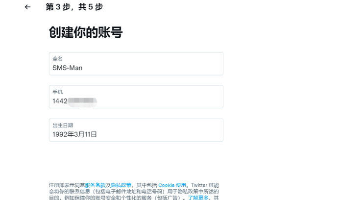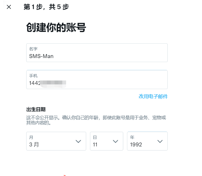 Twitter账号注册流程