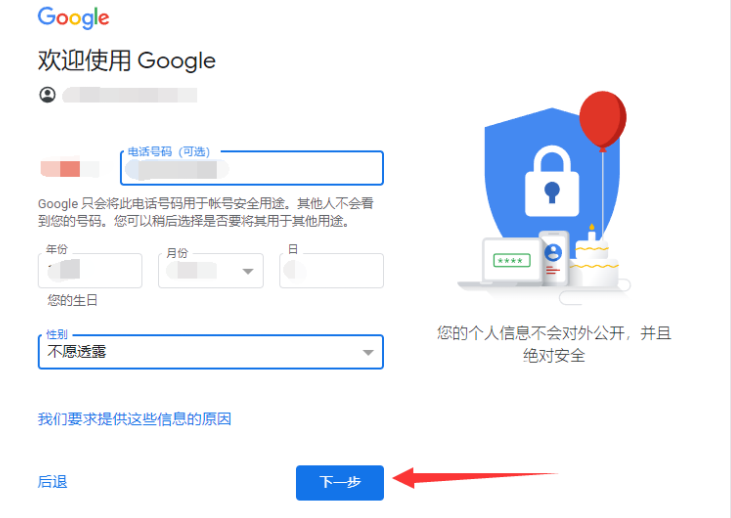 Google 账号便成功创建了,与您的 Google 帐号相关的通知都会发送到注册时使用的 QQ 邮箱中