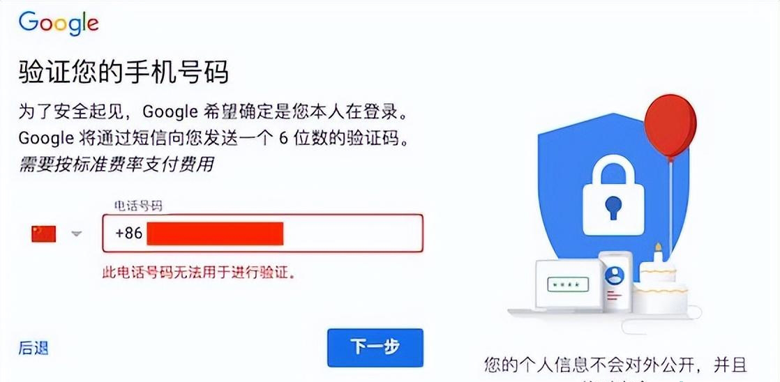 5,这一步很多人会遇到两种情况,一种成功收到短信验证信息,一种会收到此号码无法用于验证,如图