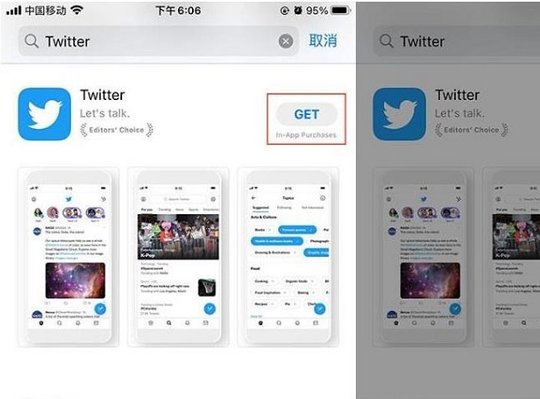 5、然后在搜索框输入”twitter“,点击获取就可以下载啦!