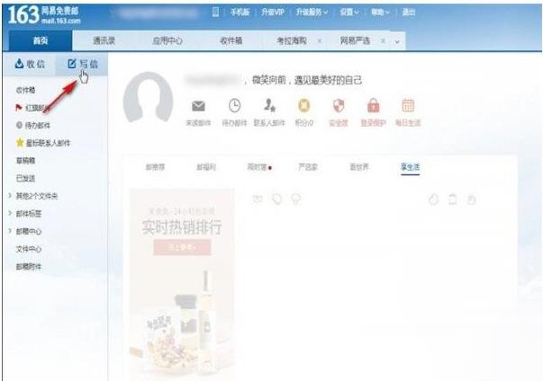 第二步:登录成功后,现在就来到了163邮箱首页,我们点击左上角的”写信“按钮。