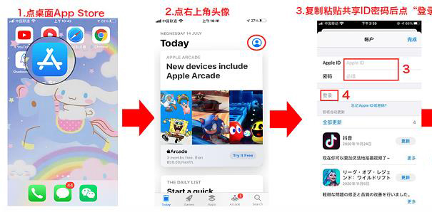 第三步:接着,复制粘贴共享的美国苹果id账号密码,进行登录即可;