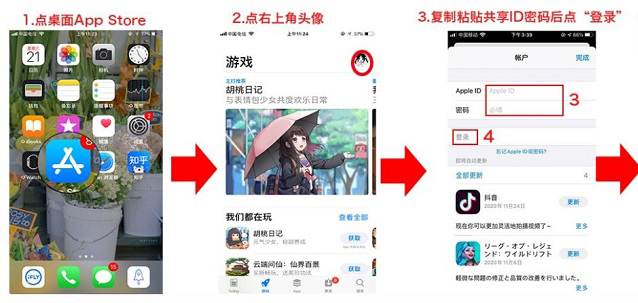 大家在登陆使用共享id时,最重要的就是不要在手机iCloud里登录,一旦锁机无法解锁,只能在AppStore里进行登录使用。