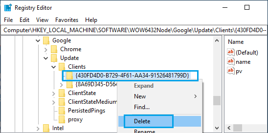 3、在注册表编辑器界面,我们导航到HKEY_LOCAL_MACHINESOFTWAREWOW6432NodeGoogleUpdateClients