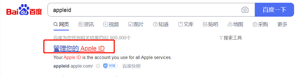 第一步:首先,我们在百度搜索“appleid”,点击第一个搜索结果;
