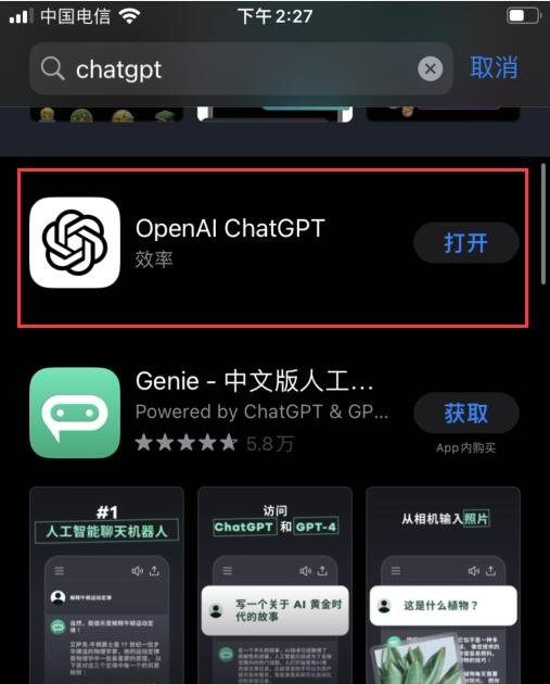 这个时候,我们再去搜索“ChatGPT”,就可以成功搜出来,点击下载即可成功下载安装。
