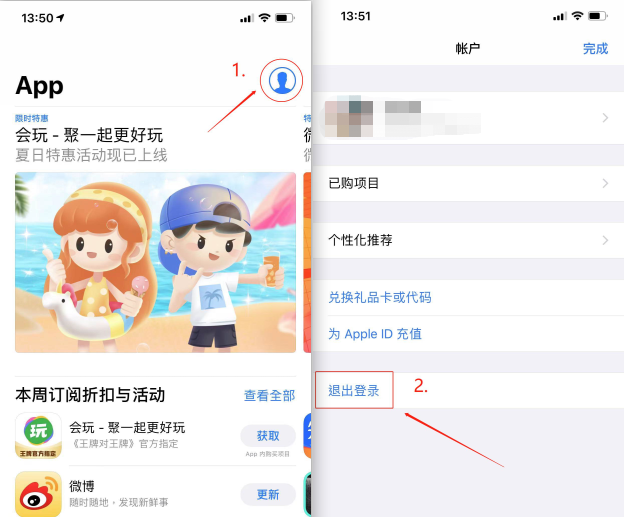 打开App Store,点击右上角的头像,然后拉到底部点击”退出登录“。此时,账号密码处就是空的,说明我们已经退出了。