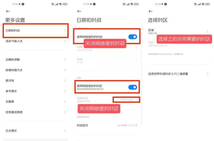 3、手机时间设置:我们在手机设置中找到【更多设置】——【日期和时间】——【选择时区】;