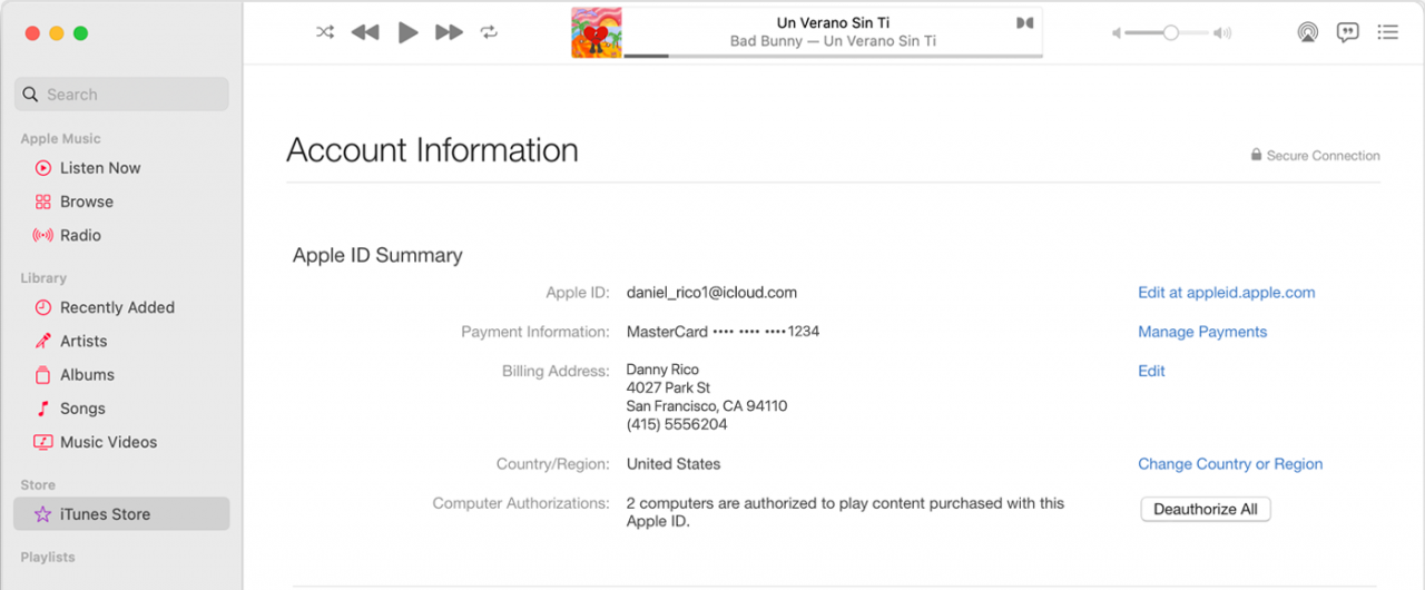 2、在屏幕上方或iTunes窗口顶部的菜单中,点击【账户】,然后点击【查看我的账户】或【账户设置】;