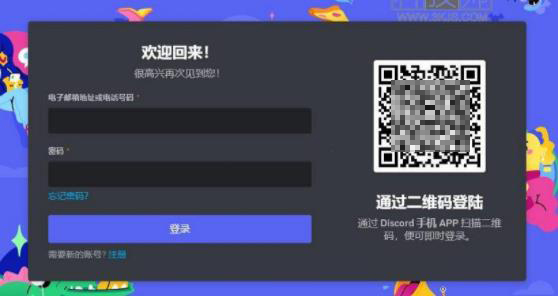 第三步:有discord账号的直接登录,也可以通过手机上的discord app扫描登录,没有账号的点击注册按钮,根据提示注册即可;