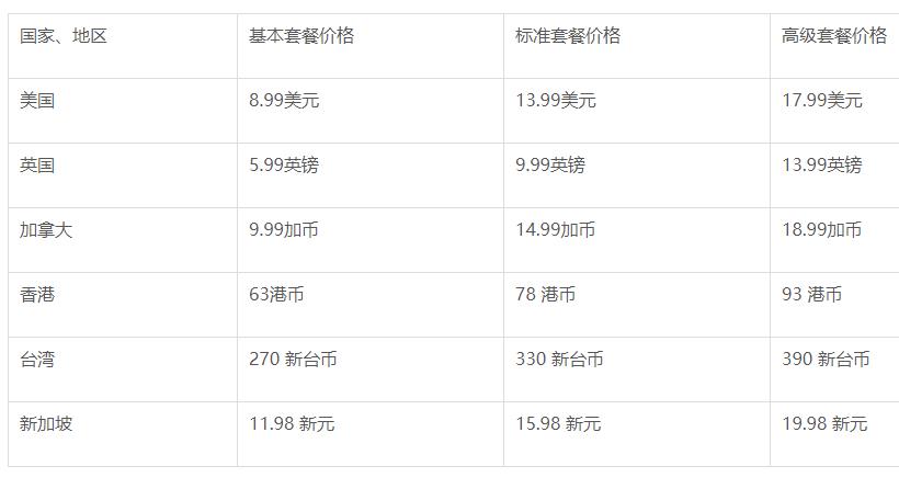 Netflix对于新用户绑定信用卡或是移动支付方式即可免费体验一个月,购买会员后每月自动扣费,套餐登录分为:一台设备、两台设备、四台设备同时在线,各国套餐分区都是这三种,但价格却有所不同。以下就是Netflix注册账号购买会员费: