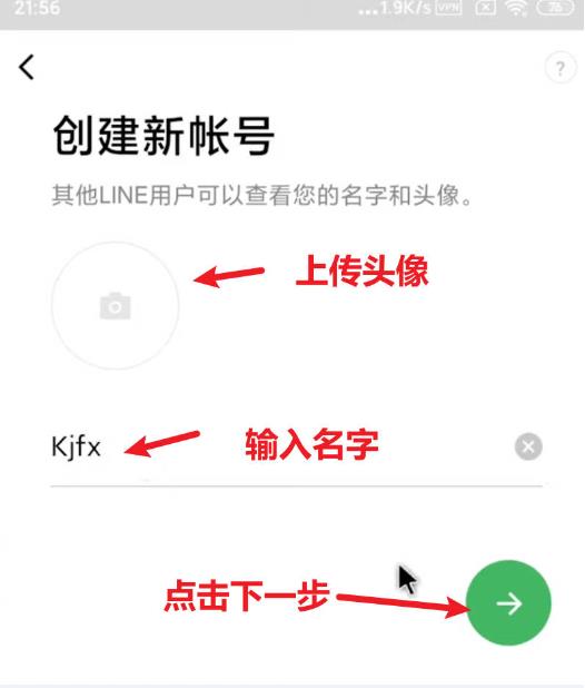 10、此时上传您的账号头像,设置昵称,再点击下一步;