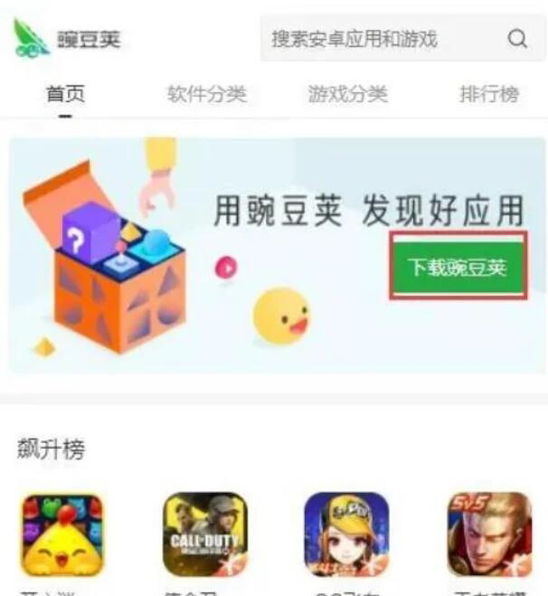 1.首先,打开手机应用市场搜索【豌豆荚】应用软件,百度也能搜索【豌豆荚】官网,下载即可。