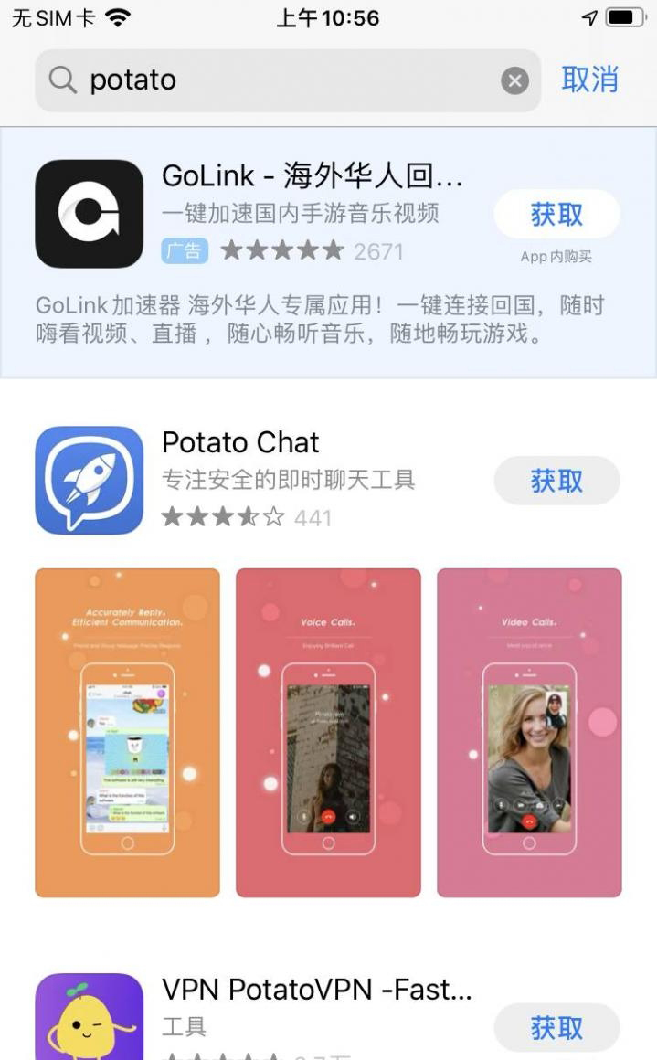 同样苹果设备在App Store也是搜索不出potato土豆聊天软件的,需要大家使用海外苹果ID登录您的App Store,这样就可以搜索出potato官网软件,接下来我们看看具体的操作方法。