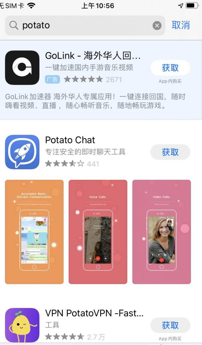 前提也是需要大家手机连接好加速器,再通过谷歌应用商店下载potato,这样您才能成功访问potato。