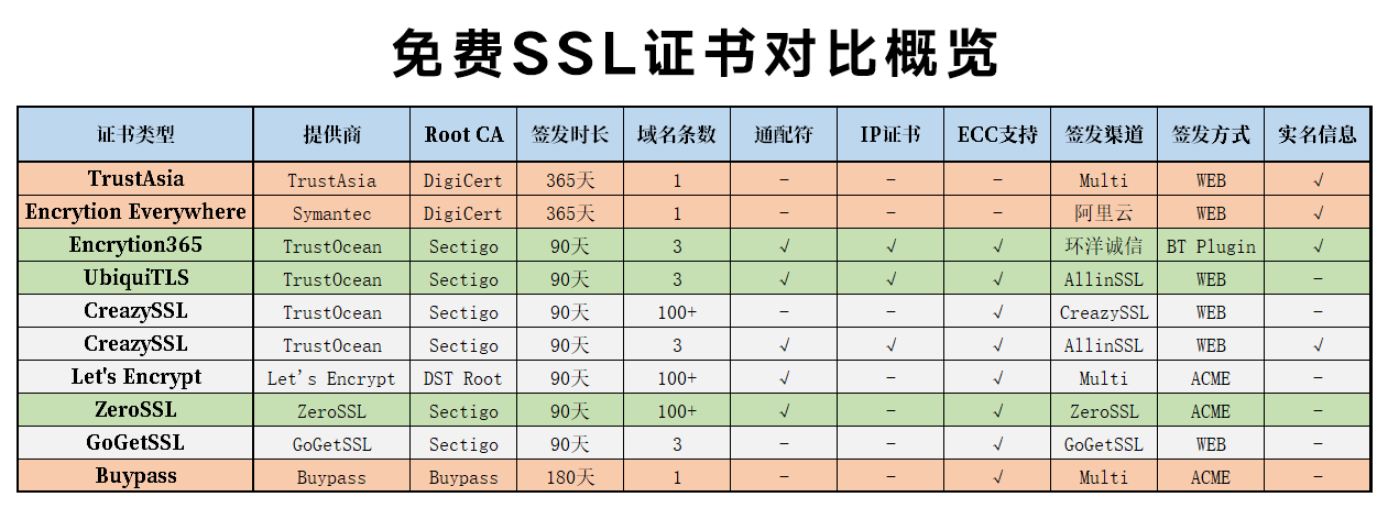 因为实名的原因显然国内厂商这些实名认证才能签发的SSL他们是摸不到的,加上最近去年白嫖的AlphaSSL证书过期、Let‘s Encrypt的OCSP被污染等等问题,最近可以说是把我能找得到的证书统统都试了一遍,就简单推荐一下我最近尝试的这些证书吧。