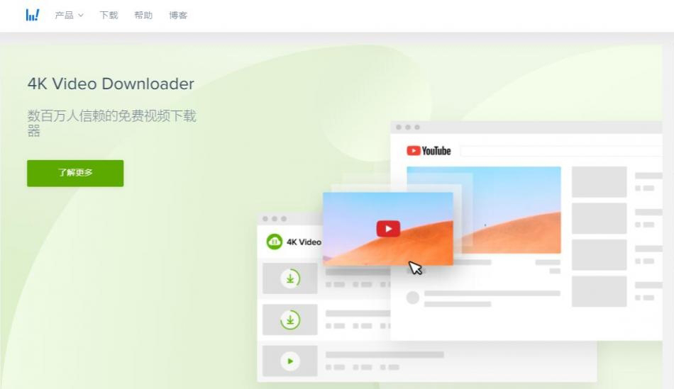 1.浏览器打开https://www.4kdownload.com/,点击右上角国旗,选择中文,再点击【获取4K Video Downloader】,下载安装到电脑上。