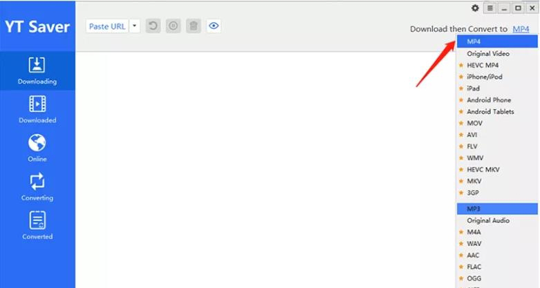 2.在setting里进行输入设置,这里选择音频质量、视频分辨率、输出格式,在YT Saver下载文件位置,默认视频格式是MP4,点击【Download and Convert to】可以选择其他格式。