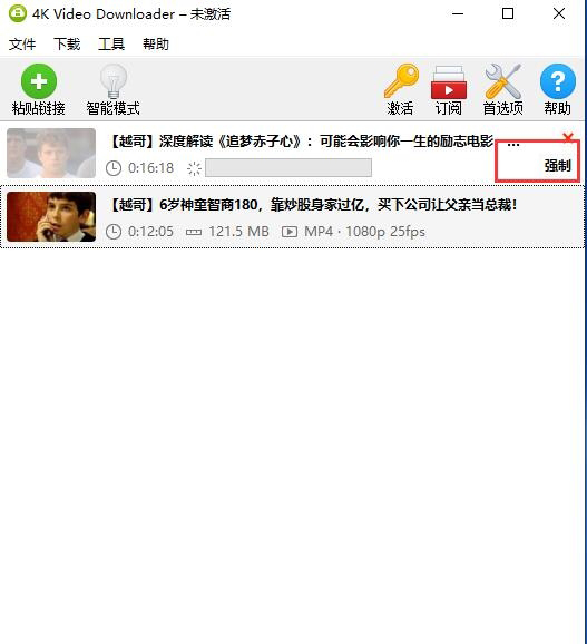 5.此时就开始下载了,要是没有反应,就把鼠标停放在下载文件上,这时会自动显示【强制】,点击它就可以下载。