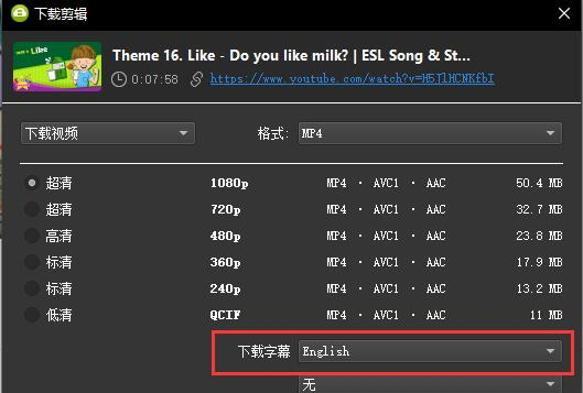 【4K Video Downloader】可以下载字幕,在【下载字幕】可以进行语言选择,点击下载即可。