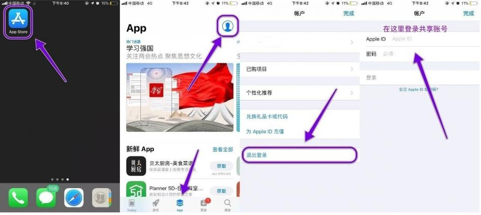 注意:共享美国苹果ID一定是在App Store里面进行登录,切记不要在设置iCloud中进行登录,造成锁机,后果您自负;