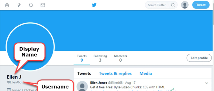 用过推特的用户都知道推特账号的名字包含有两个名字:一个是显示名,一个是用户名;从这个图片我们就可以很清楚的看到。其实这两个名字都是可以进行更改的,我们就来看一下怎么分别更改这两个名字吧。