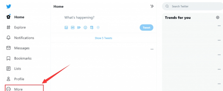 1、同样的我们也是在推特官网登录好我们的推特账号,然后点击更多“More”。