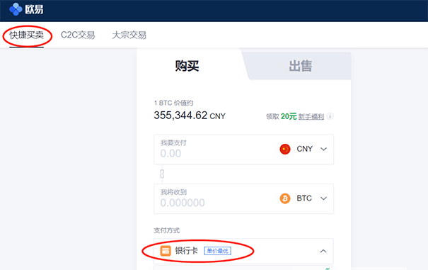 1. 登录okex找到“买币”-快捷买币区:输入金额或者币种数量。支付方式有银行卡,支付宝和微信。