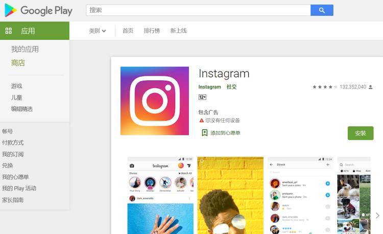 1,下载好安装谷歌商店,我们就会来到谷歌商店的主界面,如下图,主界面的软件有需要的可以直接下载。这里,我们可以看见ins就在主界面就可以找到,我们可以直接点击它。