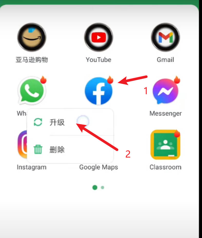2,在Gspace中默认谷歌Play商店是隐藏的,我们长按任何一个应用的图标,然后在弹出菜单中点击“升级”。