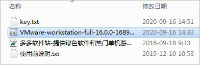 1、在本站下载解压,得到vmware workstation16安装包和许可证密钥;