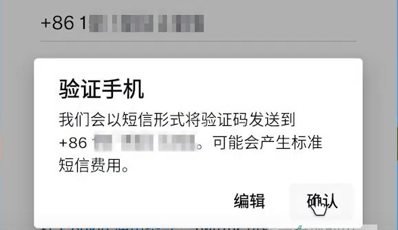 6、弹窗提示,会给你的手机号码发送注册验证码,点击确认。