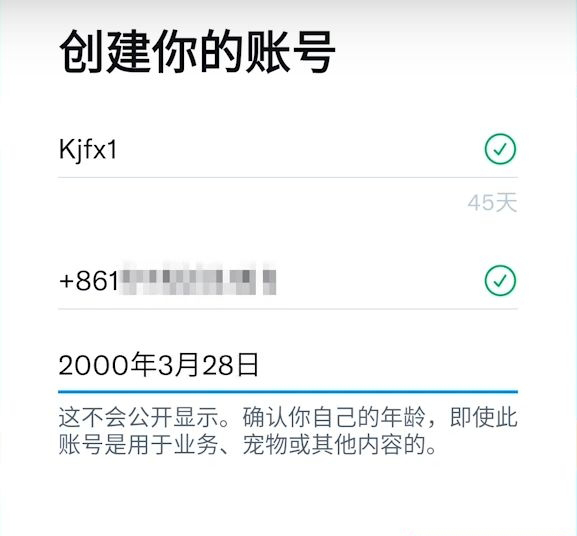3、填写账号信息,手机号码记得前面一定要添加+86,年龄选择成年以上。