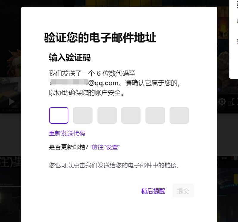 7、验证你的电子邮件地址,你的邮箱会收到六位数数字,填写到输入框,会自动跳转到下一页。