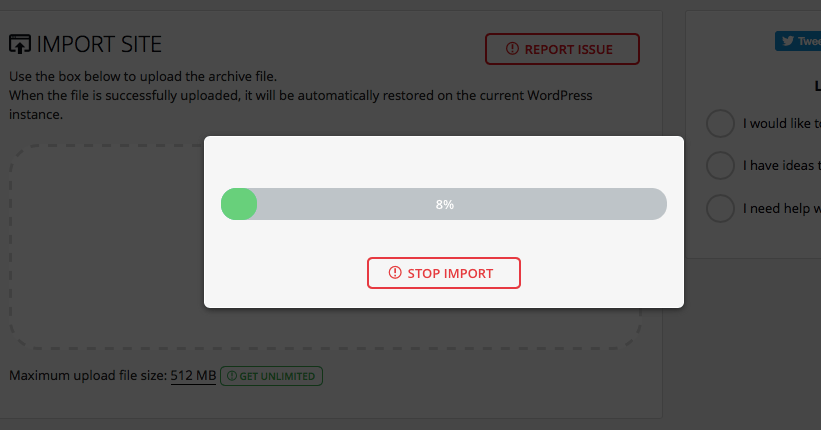 然后去新服务器安装好一个新的wordpress,然后安装一个同样的插件,启用导入刚刚下载的备份即可。不过免费版本似乎有个限制500M大小,不过大部分小站长足够了,