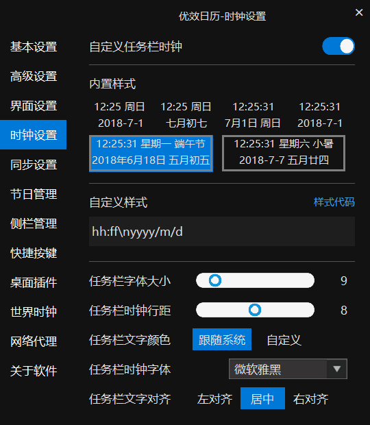 能自定义的任务栏时钟真的很香,之前不知道为什么自带时钟只显示时和分,现在使用优效日历后还能根据样式代码自定义样式,自定义程度极高。