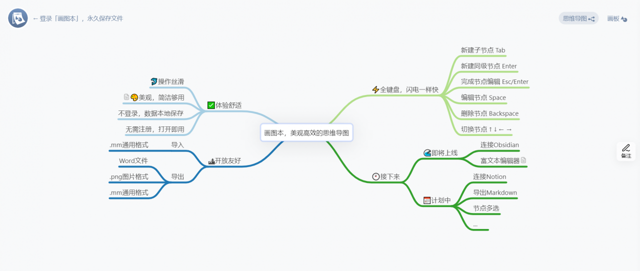 支持多用格式,支持导入*.mm通用格式,目前导出为word、图片,后续还会开发更多导出格式,不限于Markdown格式,更加方便友好!