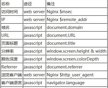 1、通过浏览器内置javascript对象收集信息,如页面title(通过document.title)、referrer(上一跳url,通过document.referrer)、用户显示器分辨率(通过windows.screen)、cookie信息(通过document.cookie)等等一些信息。