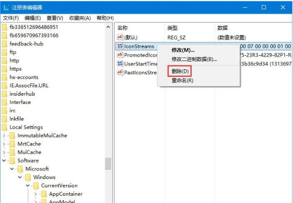 2、在文件夹中依次展开到“HKEY_CURRENT_USERSoftwareClassesLocal SettingsSoftwareMicrosoftWindowsCurrentVersionTrayNotify”,在右侧找到“IconStreams”和“PastIconsStream”这两个键值并删除;