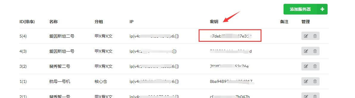 点击管理后台 - 添加服务器 - 输入名称确定,添加一个监控机器,并记录下对应的密钥。