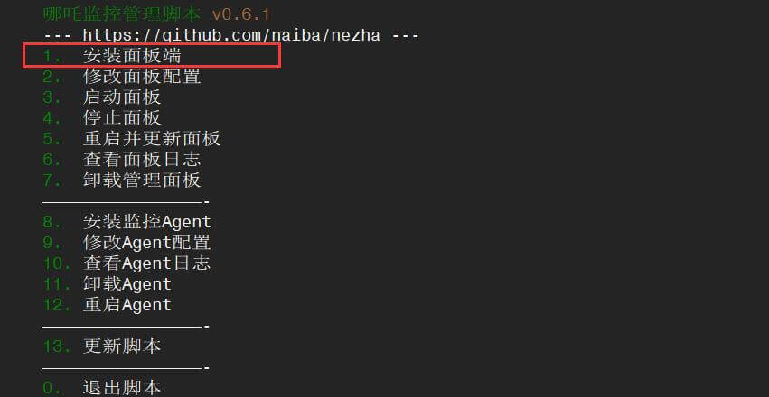 输入 1 回车,安装面板端