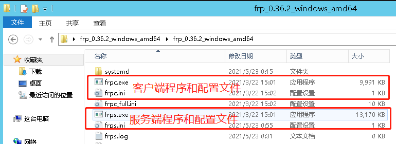 1.把压缩包解压后,将以下配置复制到服务端配置文件,即frps.ini文件