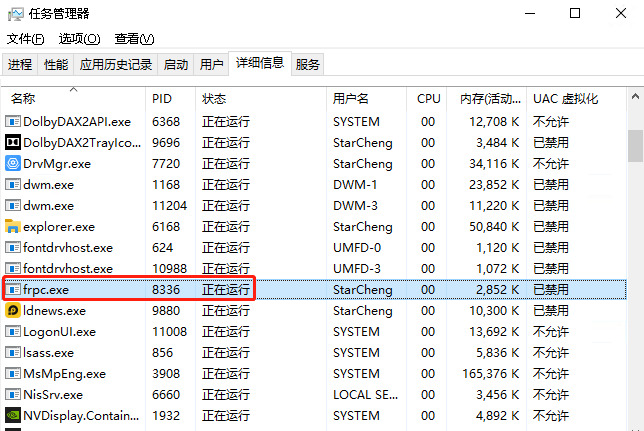 3.任务管理器中查看是否有这项进程